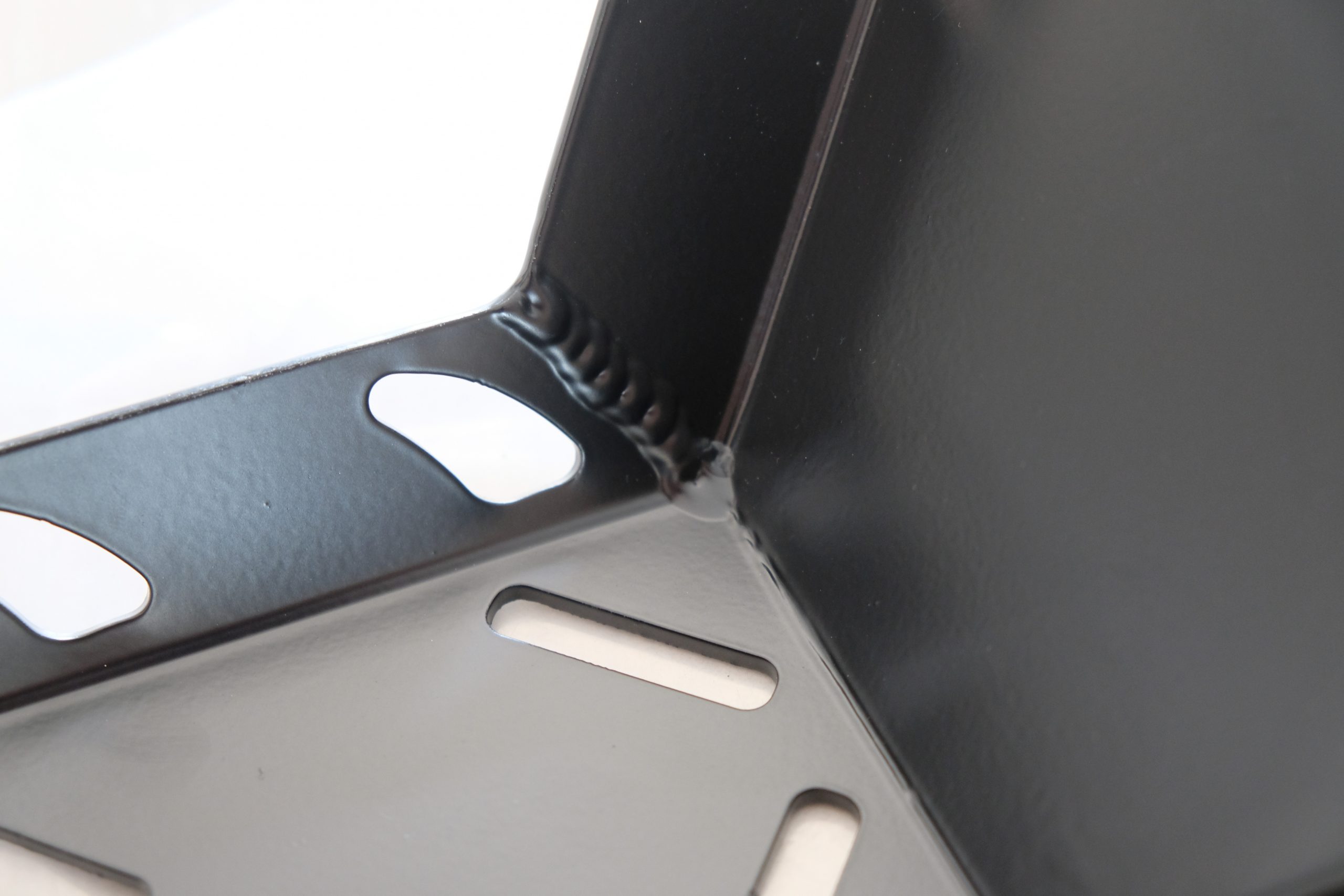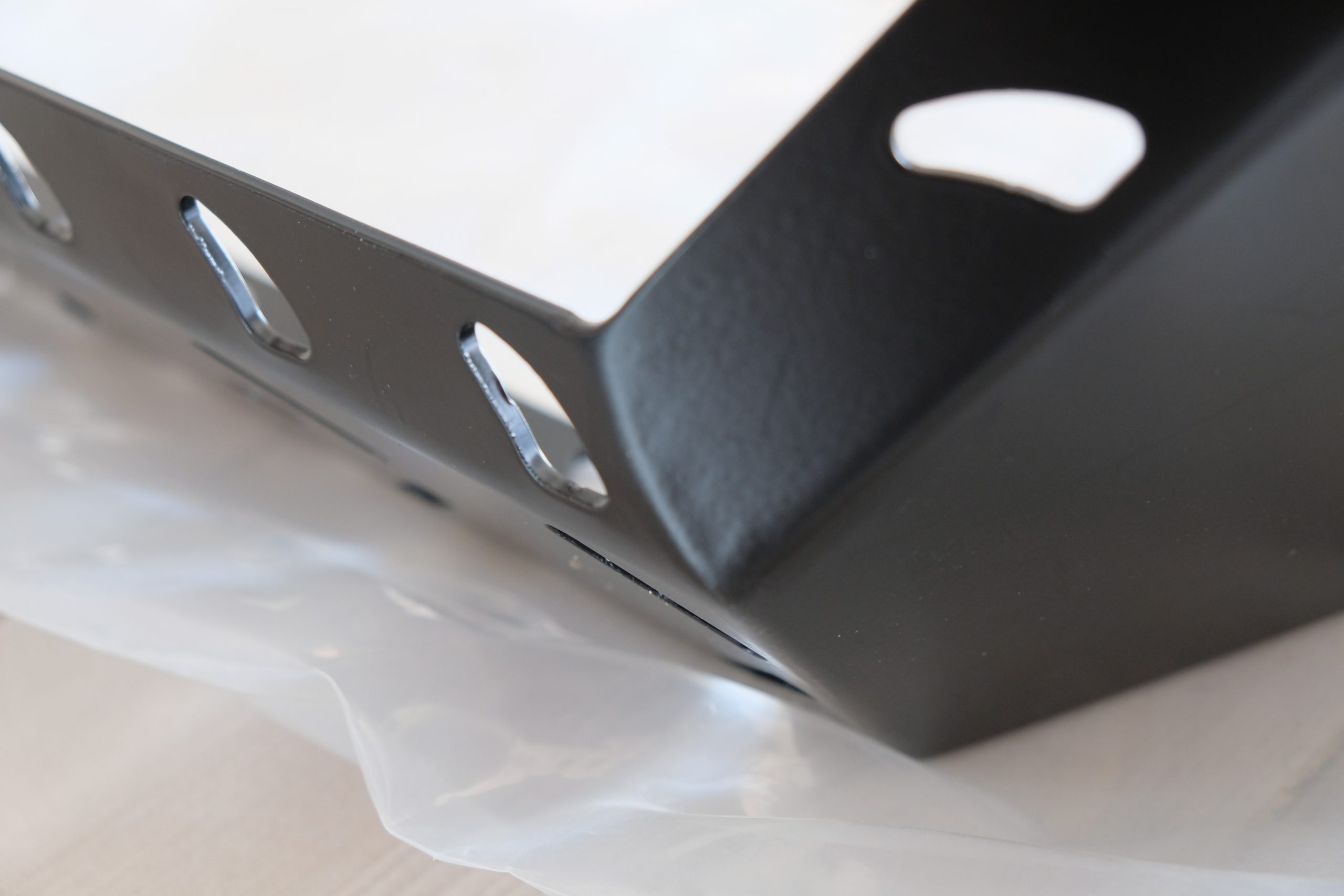 The skidplate is made of aluminum. So it comes as no surprise that it’s very light. You might even wonder whether it’s strong enough to serve its intended purpose. But more on that later. The build quality is surprisingly well: clean welds which have been smoothed on the outside and a nice satin black paint finish. The bolts and washers are made from stainless steel.